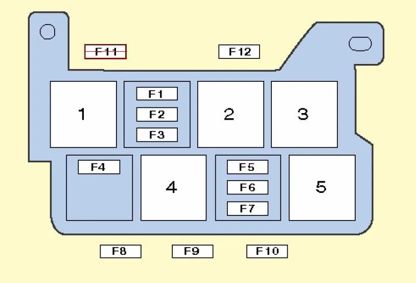 У салоні основний блок запобіжників розташований у центральній консолі, поруч із важелем перемикання передач, за захисною кришкою. І складається з 2 відділів.